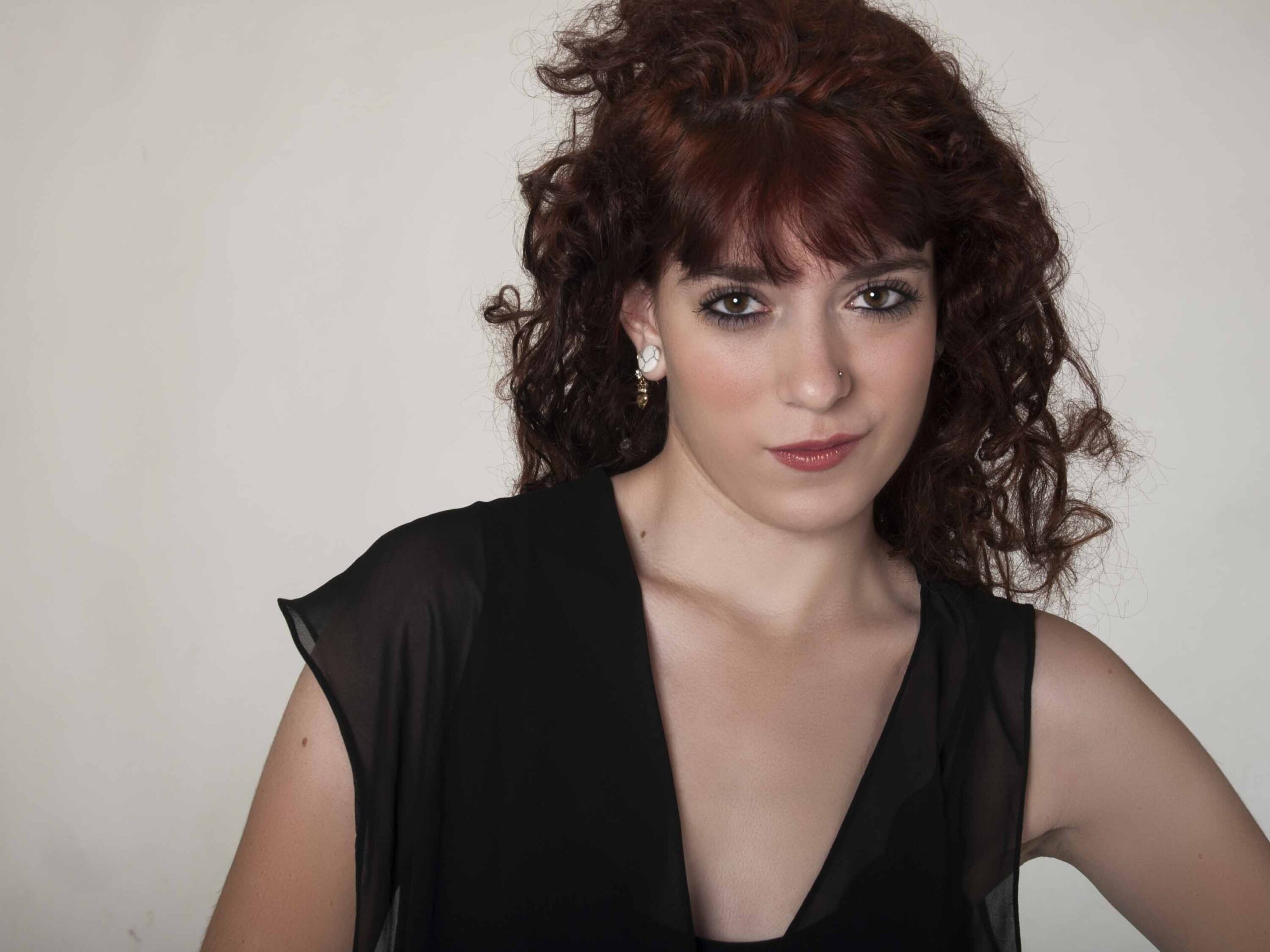 This is a set of images taken with Alexandria Beret during one of our shoots together. She is dressed in white jeans and black top while posing on a white backdrop. Photographed in studio on 1-02-2012.