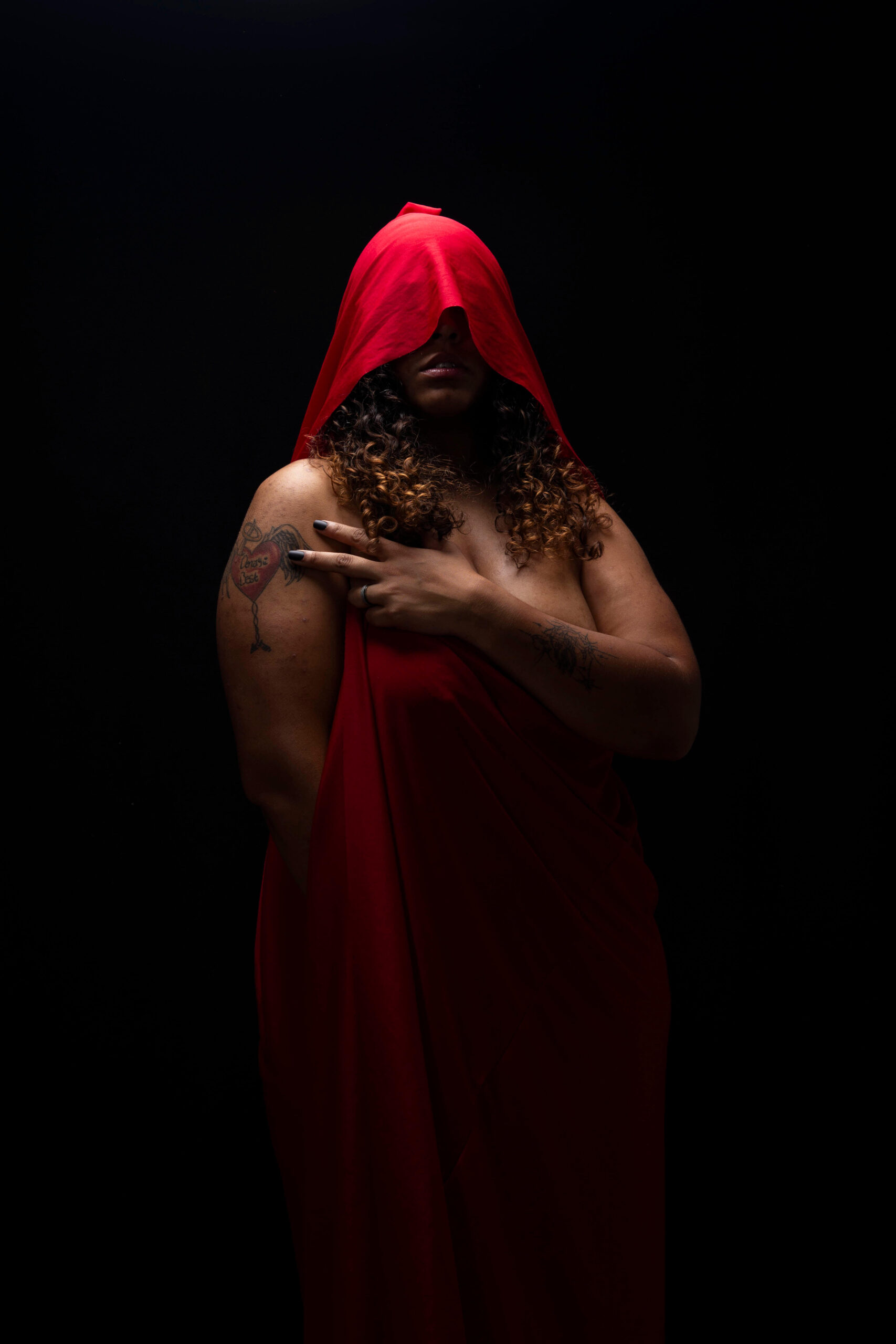 This is a set of images taken with Ary Kali during one of our shoots together. She is nude with just a red cloak while posing on a black backdrop. She ends the shoot using a skull as a prop. Photographed in studio on 10-01-2025.
