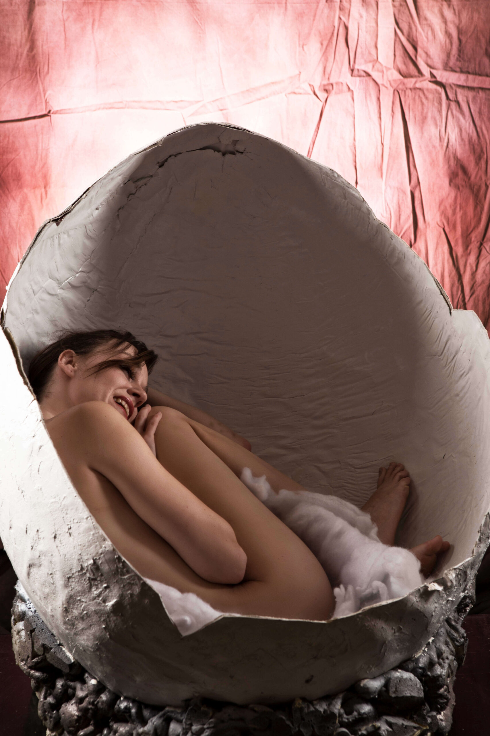 This is a set of images taken with Cat H Marie during one of our shoots together. This was photographed for my “Hatched” project. She is nude inside of a giagantic egg. Photographed in studio on 11-21-2021.