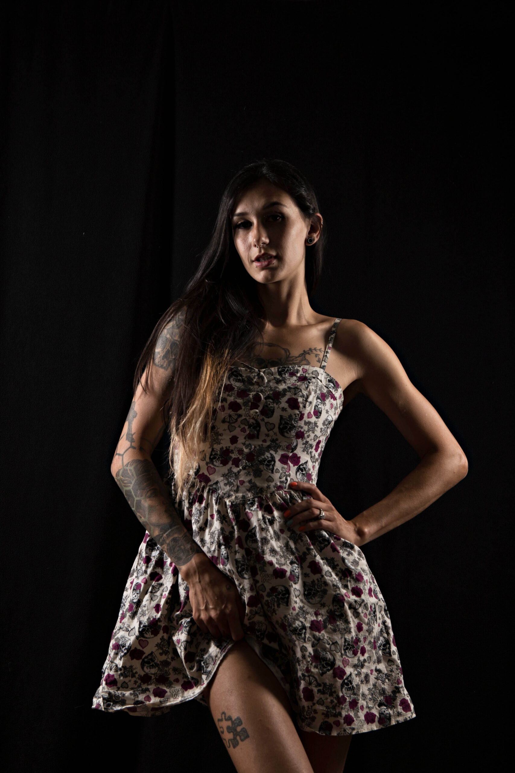 This is a set of images taken wit GreasyRose during one of our shoots together. She is posing against a black backdrop while wearing a white flower dress. Photographed in studio on 07-12-2019.