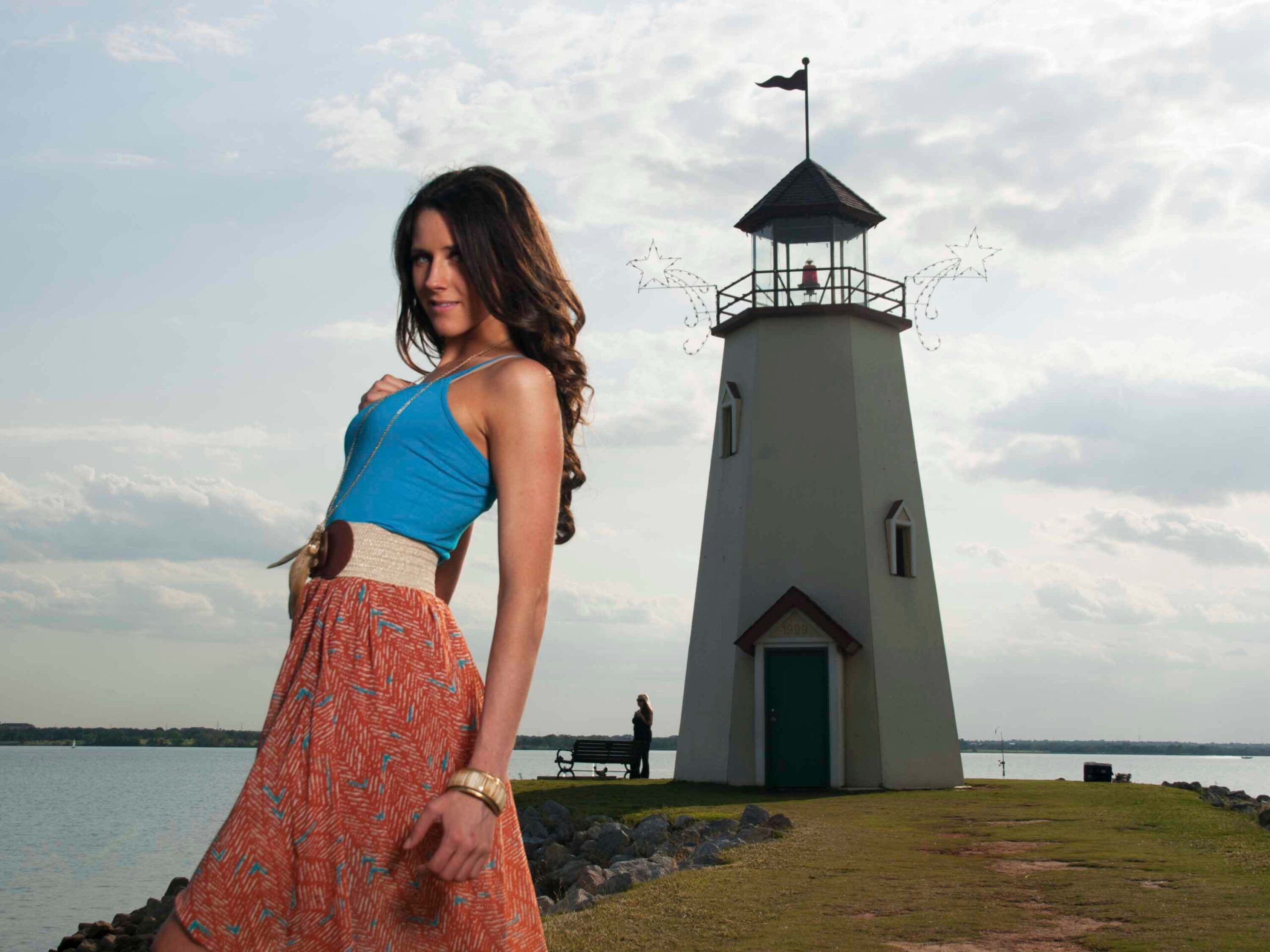 This is a set of images taken with Chelsea Freeman during one of our shoots together. We are out at Lake Hefner doing a fashion shoot. She is wearing a blue top with a brownish dress. Photographed on location on 5-14-2012.