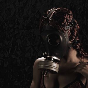This is a set of images taken with Meredith Dunn during our shoot together. This was shot for my “Fallout Fems” project. She is wearing a pink lingerie bottom with blue bra, all while wearing a gas mask. Photographed in studio on 2-08-2011.