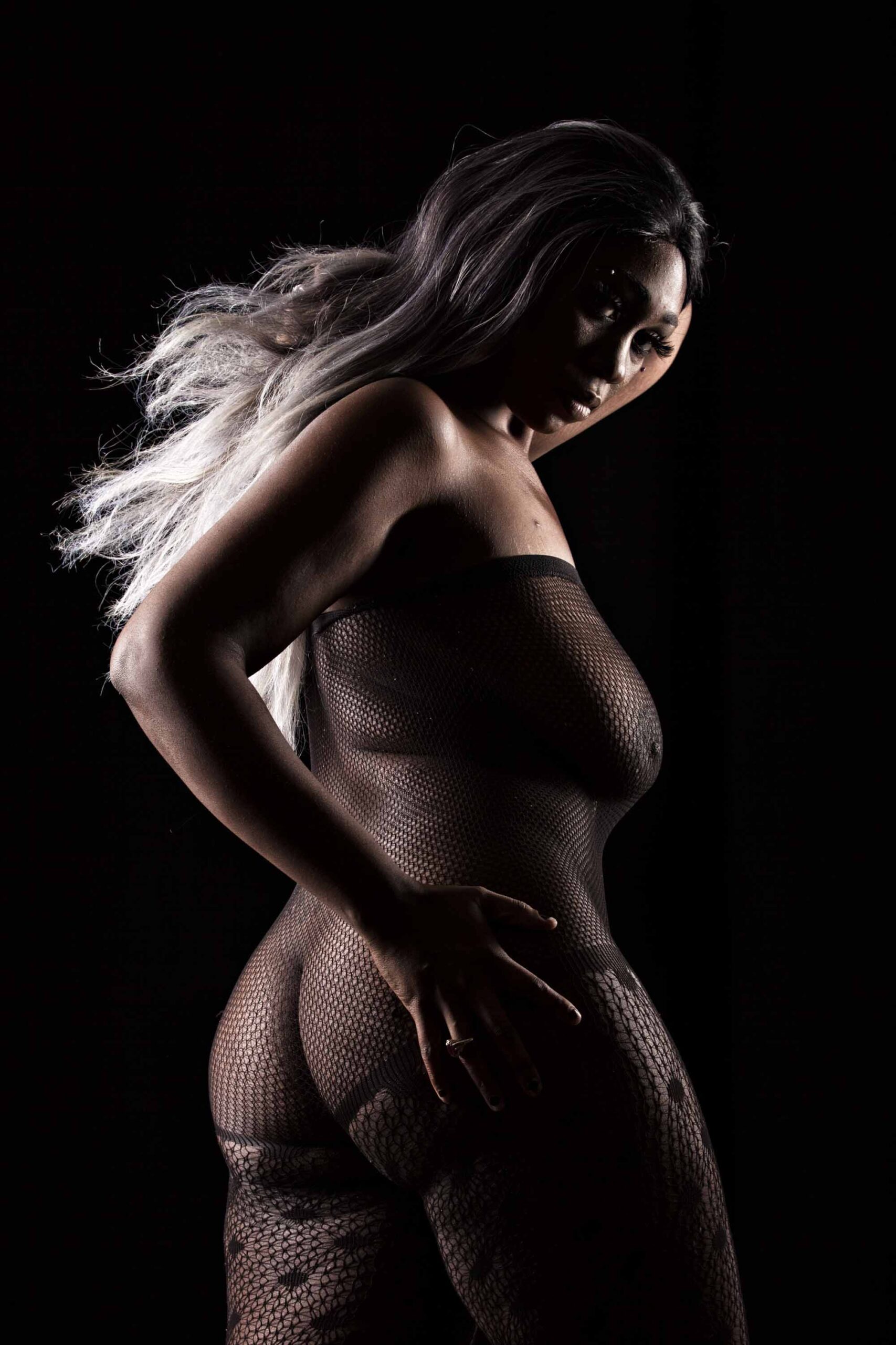 This is a set of images taken with Kristen Thomas during one of our shoots together. This was photographed for my “Netting” project. She is wearing nothing but a mesh body suit. Photographed in studio on 9-30-2018.