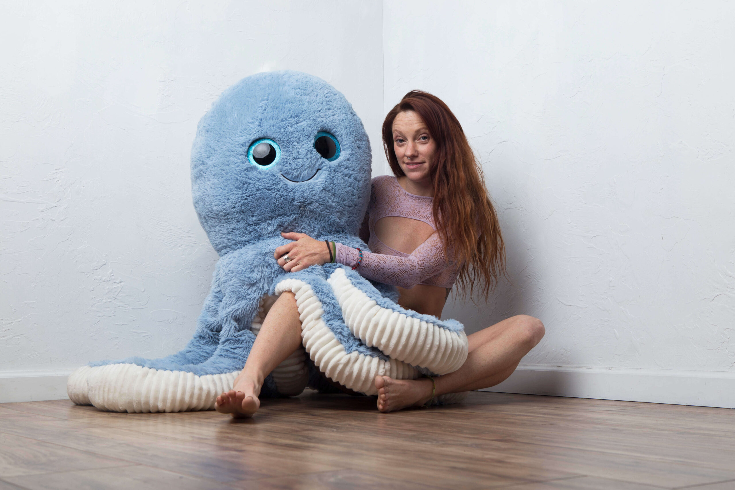 This is a set of images taken with Sunshineandsmoke927 during one of our shoots together. This was photographed for my “Mis-use of Toys” project. She is sitting on the floor wearing a sheer top with matching panties. All while cuddled with Squidgy my baby blue octopus. Photographed in studio on 1-20-2024.
