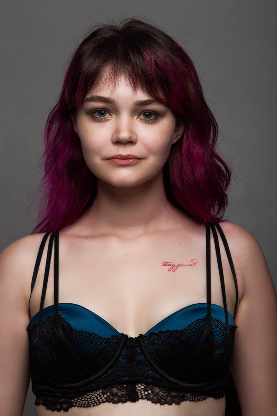 This is a set of images taken with PositivelyComplicated during one of our shoots together. This was a warm up set prior to shoot my cannibal series. She is wearing a dark blue and black lingerie set. Photographed in studio on 7-05-2021.