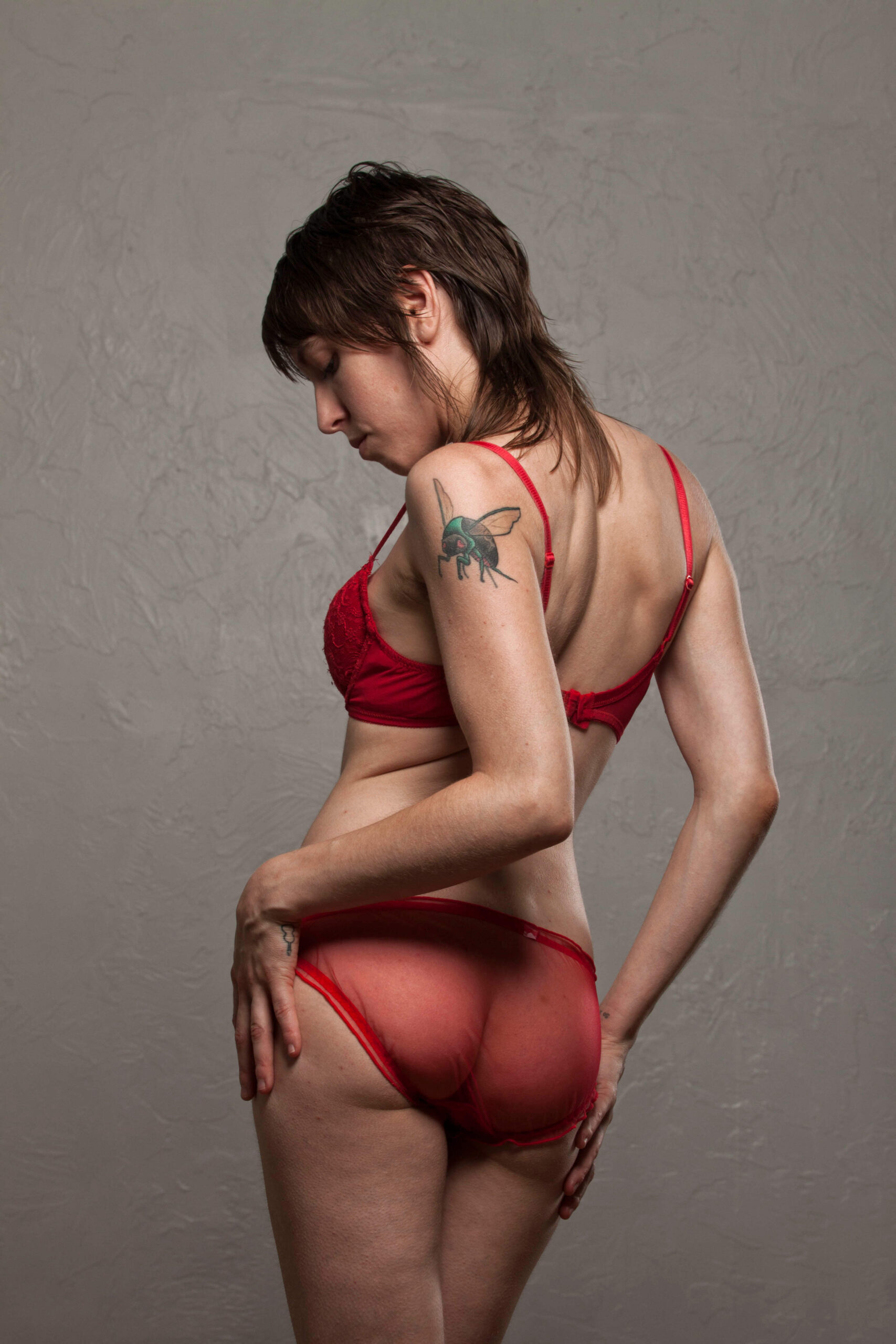 This is a set of images taken with Melancholic during our shoot together. She is posing against a grey background while wearing a red lingerie set. Photographed in studio on 7-20-2020.