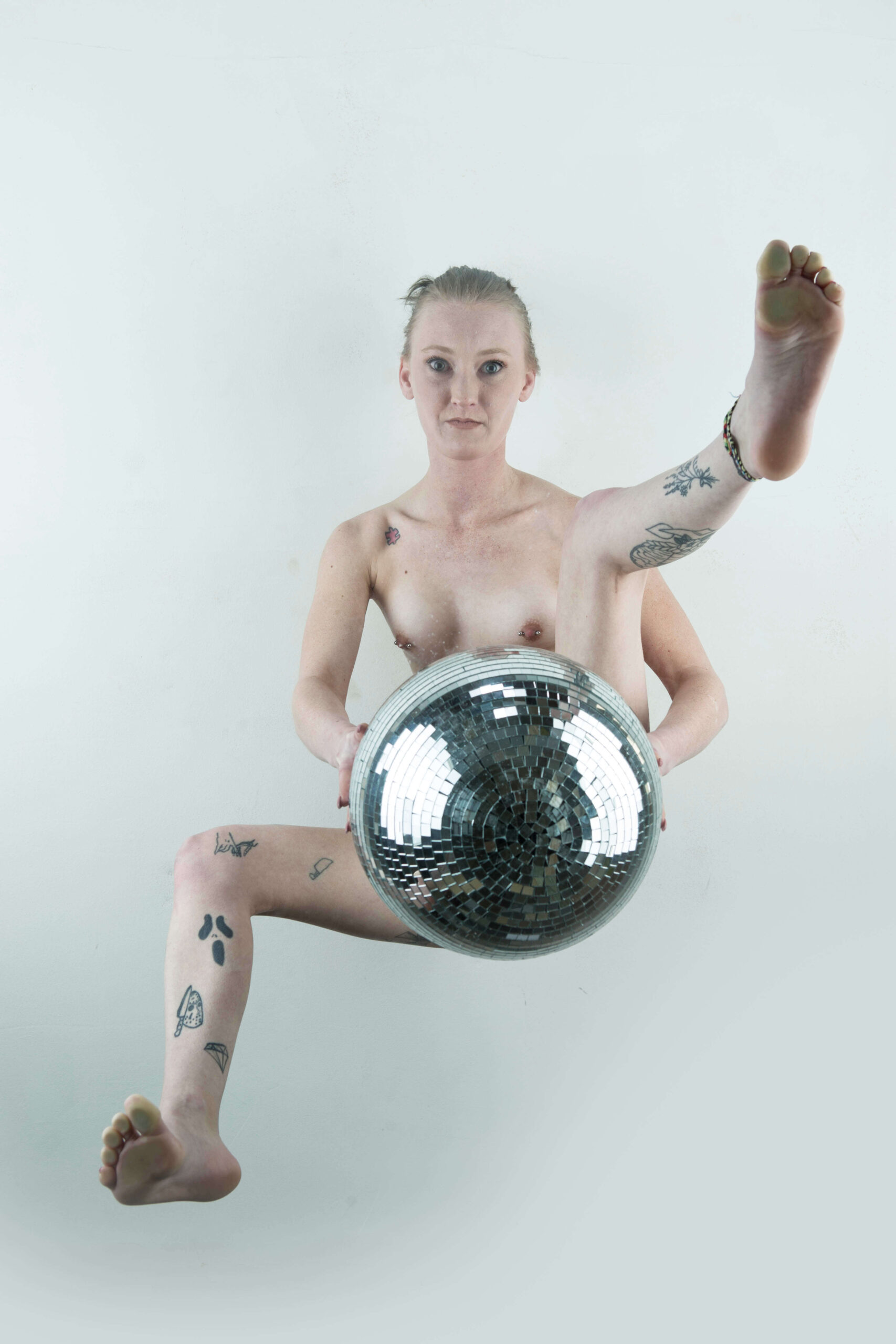 This is a set of images taken with Britney Sebourn during one of our shoots together. She is on a platfom topless on top of a disco ball. This was photographed for my “Seen From Below” project. Photographed in studio on 12-12-2020.