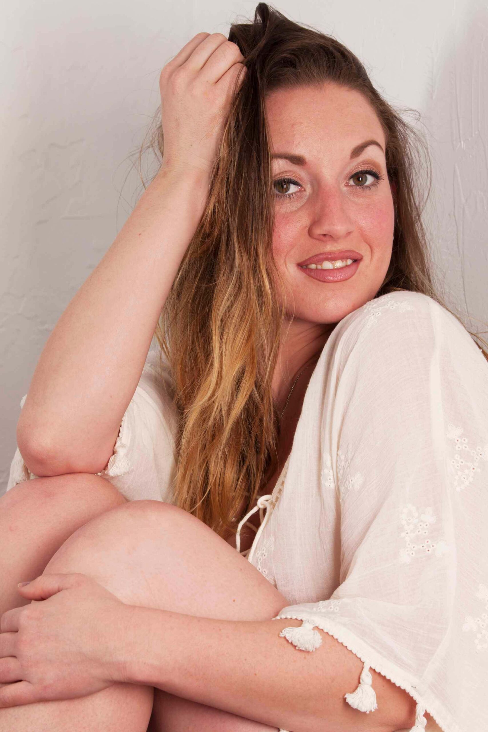 This is a set of images taken with Halle Lovelady during one of our shoots together. She is wearing a white shawl, sitting on top of a piece of furniture. Photographed in studio on 1-23-2019.