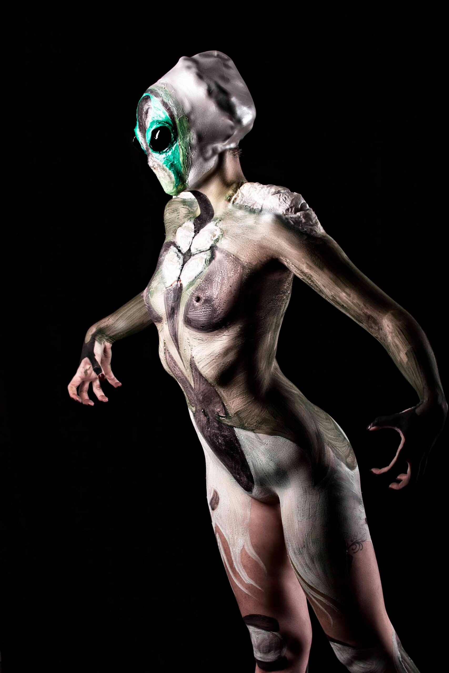 This is a set of images taken with Indijo14 during our shoot together. This was shot for me “OKC X-Files” project. She is completely nude wearing only various colored body paints with a custom made latex mask. The FX was provided by Ryynagade. Photographed in studio on 1-14-2019.