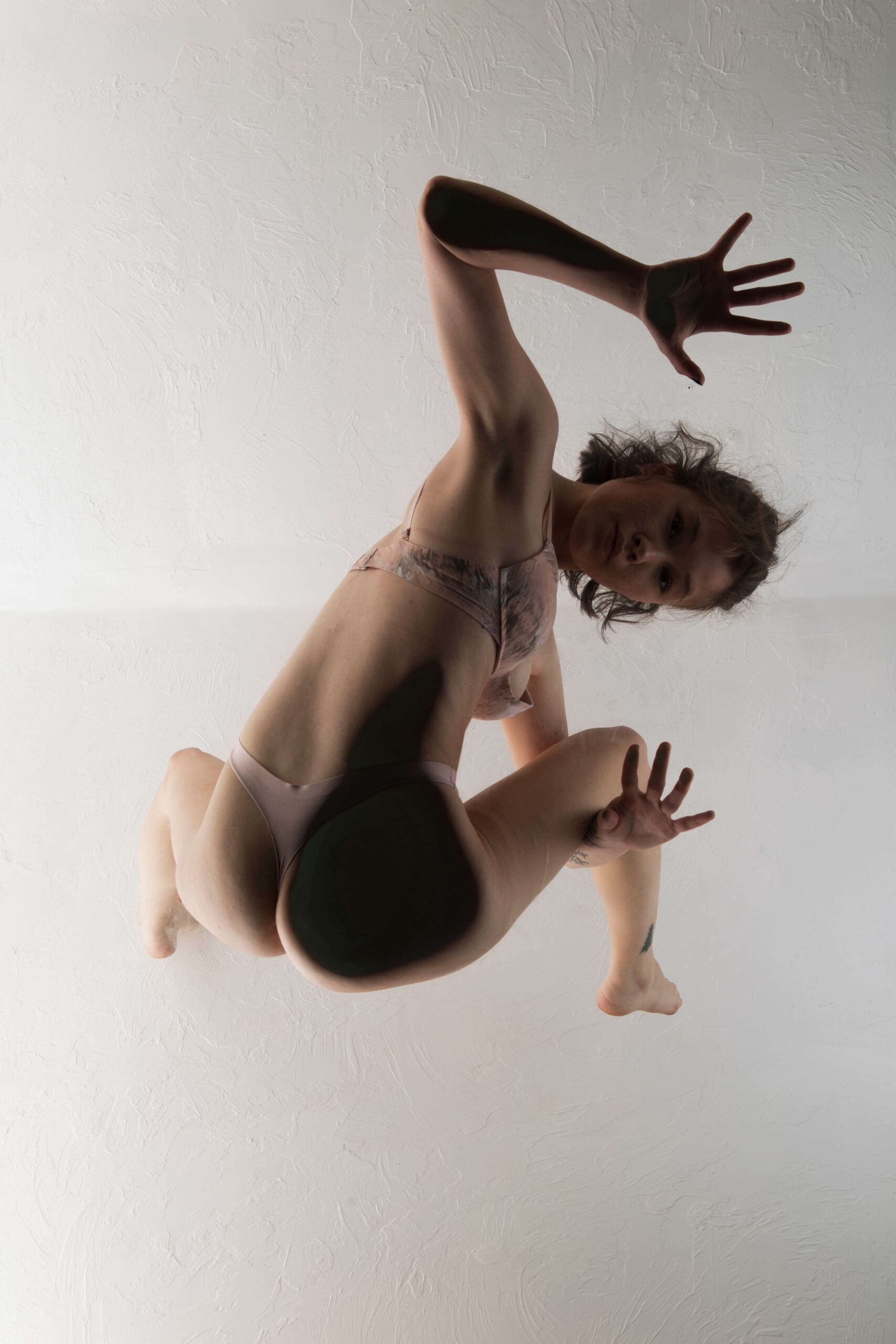 This is a set of images taken with Hannah Danielle during one of our shoots together. This was photographed for my “Seen From Below” project. She is wearing a neutral colored lingerie set while posing up by the ceiling. Photographed in studio on 04-16-2022.