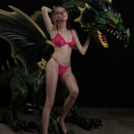 The models bring beauty, mystery, and attitude to the frame. Whether posing in armor-inspired fashion, minimalist lingerie, or ethereal fabrics, each model finds her own way to interact with the dragon. Some ride it like a creature from legend. Others lounge beside it like a modern-day Daenerys. Some laugh, flirt, or stare it down with warrior-like focus. The interplay between the real and the imagined—the softness of the human form and the hard edges of molded plastic—creates a visual tension that’s as absurd as it is beautiful.